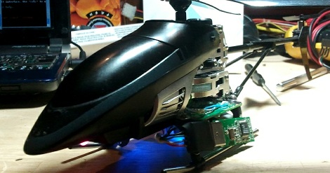 Adición de una cámara inalámbrica del router y de un helicóptero a control remoto La Navidad pasada, [ buena fe ] recibió un helicóptero de Wi-Fi habilitado para el control remoto de su empleador. El protocolo utilizado por el helicóptero Wi- Fli es de código cerrado , pero algunas personas han tenido suerte en la ingeniería inversa de este juguete fresco. En lugar de simplemente controlar el helicóptero a través de WiFi , [ buena fe ] quería añadir unas cuantas funciones no compatibles Vea estos interesantes articulos