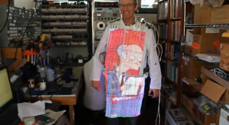 Capa de vÃdeo portátil [ David Forbes ] no es ajeno a lo raro y esotérico , así que creó un color LED TV integrado en una bata de laboratorio . Se planea llevar a Burning Man el próximo mes. Los LEDs RGB se montan juntas estrechas flex , proporcionando un 160 × 120 píxeles de pantalla NTSC . Por supuesto, la construcción no sería sobre el tope , sin la posibilidad de conectar un Nintendo en una bata de laboratorio , así que no hay una entrada NTSC en un conector RCA . Vea estos interesantes articulos