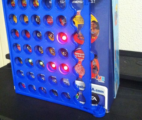 Connect 4 reloj binario Como parte de una clase en la Universidad, [ y ] Emacheen22 sus compañeros se volvió un viejo juego Conecta 4 en un reloj binario. Esta imagen muestra el dispositivo a punto de concluir , pero la versión final incluye las fichas de juego que difunden la luz del LED . En lugar de utilizar el marco del juego independiente , el equipo decidió utilizar el cuadro de la sede de los LEDs y esconder la electrónica . Vea estos interesantes articulosINICIO --------------------------------------------------------------------------------------------------------------------------- |