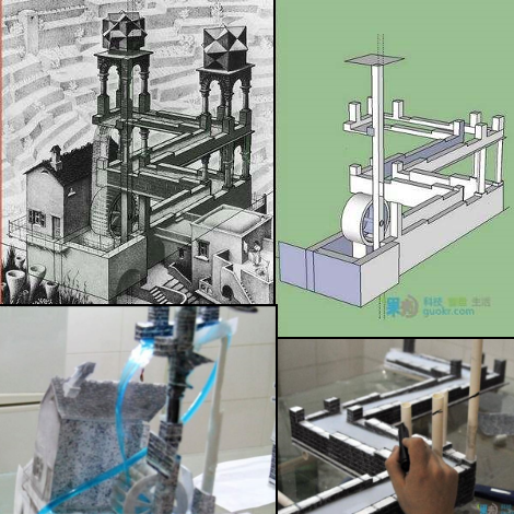 Construir una vida real Cascada de Escher especulado soluciones a la cascada de Escher éste se las arregla para mantener la trayectoria del agua coherente hasta el nivel superior . Vea estos interesantes articulosINICIO --------------------------------------------------------------------------------------------------------------------------- |