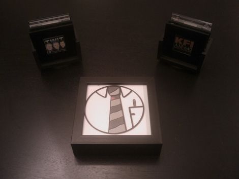 , Que contienen referencias a la línea particular, emisoras de audio . Él usa estos azulejos para sintonizar los canales de audio en su HTPC que los coloca en un bloque que contiene un lector de RFID .