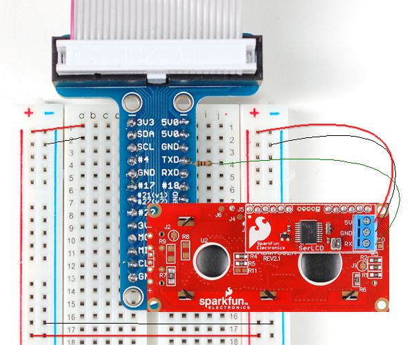 [ Shaun ] utiliza tablero de arranque Adafruit para conexiones de soldadura para los seis botones y la pantalla del LCD del carácter .