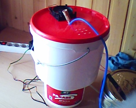 Moscú está en un poco de un punto caliente en este momento, ante una ola de calor e incendios forestales enormes. La combinación de humo, cenizas y calor Andrés conducía una pared de manera construyó un artilugio para proporcionar algo de alivio. Tiene dos cámaras, el agua casas fondo de hielo, el superior es un deflector de aire. Un pequeño ventilador DC bombas de aire en la cámara superior donde se encuentra con el agua que se pulveriza en el depósito inferior. El resultado es un intercambio de calor similar a otras configuraciones de CA diy que hemos visto. Pero Andrés también toma nota de que después de ejecutar el dispositivo por un tiempo el olor a humo y cenizas se ha ido. ¿Puede esta instalación se considera una forma efectiva para atrapar partículas en el aire de humo?