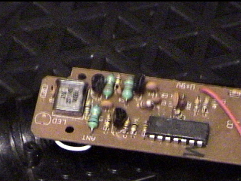 2. Se ve la parte trasera del flying saucer, si puedes notar el pequeño motor en la parte baja de la imagen 3. El receptor de la parte guinda expuesta, se nota un transistor, y inductor, ningun circuito integrado.