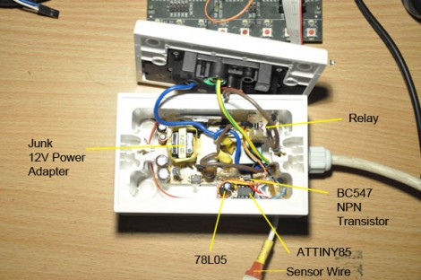 Es lo suficientemente pequeño como para caber dentro de la caja de salida , junto con un transformador pequeño y regulador lineal para alimentar a los circuitos de la lógica.