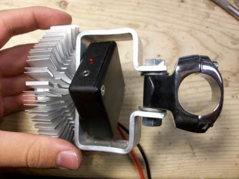Él no tiene problemas de iluminación en su camino con este punto de vista 1300 Lumen bicicleta que él construyó.