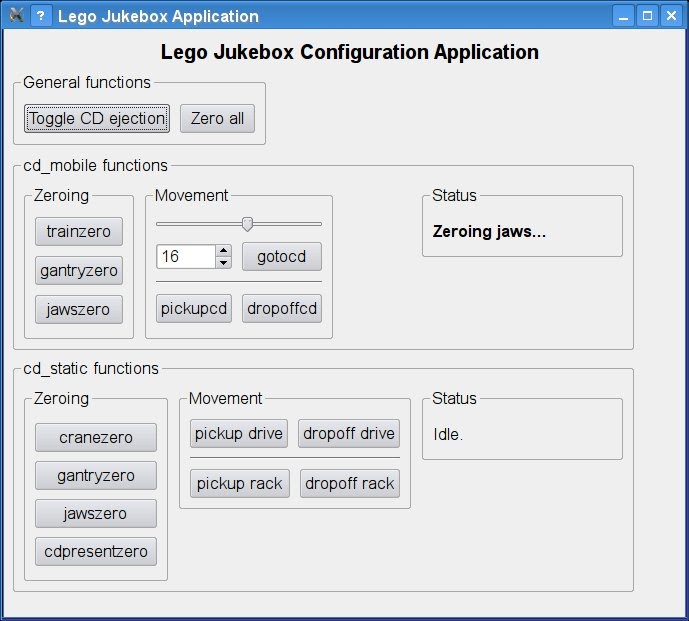 Es un cambiador de CD construida con piezas de LEGO . Nos recuerda las máquinas de discos de mediados de siglo que cambió a 45 años en un tocadiscos .
