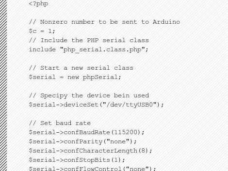 Los fundamentos del control de un Arduino con PHP Usted puede agregar fácilmente el control basado en Internet para tu Arduino si está lo suficientemente cerca de su servidor para conectarse a través de USB . La esencia de este método consiste en una página web que incluye elementos de PHP . Vea estos interesantes articulos