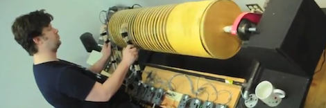 Magnetotron es una armónica mellotron mashup [ Michael ] es un gran fan de los formatos de los medios tradicionales . El Magnetotron es un gran cilindro giratorio que tiene docenas de tiras de cinta de audio que se le atribuye . Vea estos interesantes articulos