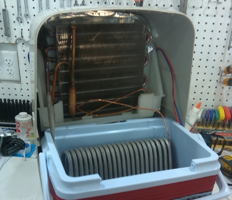 Sus dos primeros intentos de participar de mantenimiento de la solución de enfriamiento en el interior de la kegerator , pero se encontró con que ni las bombas agregó demasiado calor a la solución, o que el kegerator se ejecuta en casi un ciclo de trabajo del 100 %