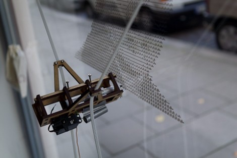 Si usted está pagando mucho dinero por las ventanas del piso al techo, ¿por qué no convertirlo en un lienzo para su arte. Der Kritzler es un plotter motorizados que pueden hacer esto en una realidad . Se trata de un titular de la pluma cortada por láser suspendido de un par de poleas correa. Los cinturones tienen contrapesos , que hacen más fácil para los motores paso a paso para mover la plantilla de la pluma sin problemas. El firmware que se ejecuta en el Arduino que controla Der Kritzler tiene algunos requisitos de configuración muy precisa . Puesto que no hay información para el Arduino para detectar la posición de la pluma , los dos motores paso a paso debe ser exactamente 1.500 mm de separación, con 1060mm de la correa dentada entre el carro y cada motor paso a paso cuando el equipo está encendido.