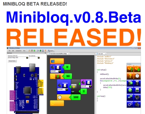 Minibloq Arduino IDE está en Beta y en la necesidad de los probadores Si usted ha sido muerde las uñas para dar arrastrar y soltar de programación de Arduino un intento, por fin Minibloq en Beta y listo para poner a prueba ! Ya hemos mencionado la aplicación en abril de este año , cuando [ Julián da Silva ] se encontraba todavía en las primeras etapas de desarrollo del software. Vea estos interesantes articulos