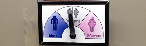 Monitorización del estado de un cuarto de baño unisex Hace años, alguien en el trabajo [ Chuck ] ' s se le ocurrió la brillante solución de un indicador para ver si el baño unisex es actualmente vacante , cuarto de baño de los hombres , o un cuarto de baño de las mujeres. Al igual que el signo artículo anterior , [ Chuck ] ' s de construcción tiene tres estados : un cuarto de los hombres , sala de mujeres, y la vacante con un marcado manual que se activa cada vez que alguien entra o sale . Vea estos interesantes articulos