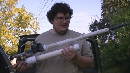 No construir un sistema automático de la baterÃa de lanzamiento de pistola de aire No hay nada como [ Elliot ] sensación angelical ' s de asombro y risa maníaca después de que las pruebas de su completamente automático de baterías AA de lanzamiento de pistola de aire comprimido . Que dispara 600 balas por minuto . Tenemos que tomar un minuto y decir [ Elliot ] ' s armas de fuego es peligroso estúpidamente . Se utilizan tubos de PVC para mantener la presión del aire , de modo que puede estallar . uno de estos días . La mecánica de la pistola es un simple tornillo de golpe hacia adelante Cuando se aprieta el gatillo, perno de la - . Y batería - se ven obligados hacia adelante debido a la presión del aire . Vea estos interesantes articulosINICIO --------------------------------------------------------------------------------------------------------------------------- |