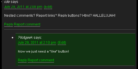 Opina actualizaciones del sistema Hemos estado trabajando duro en este evento y, finalmente, hizo un poco de progreso. Usted encontrará que los comentarios están anidados. Podemos ver que hay algunos problemas visuales leves , pero estamos trabajando en ello. Una vez más, estamos trabajando por esto y tener una lista decente de peculiaridades que hay que funcionó , pero parece ser sobre todo funcional. Vea estos interesantes articulosINICIO --------------------------------------------------------------------------------------------------------------------------- |