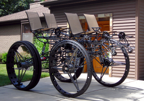 Quadbike: cuanto más grande mejor El BigDog, como su llamado, asientos de 4 personas en sillas de jardín que el pedal a su destino.