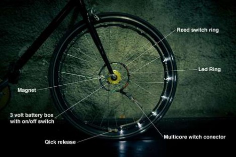 Revolight clon [ Fabian.E ] quería para iluminar las llantas de su bicicleta , pero no quiere pagar un montón de almejas para hacerlo . Él lo llama el lightrider y se basa en el concepto revolights . Que el diseño utiliza un microcontrolador que es capaz de animar a los patrones cuando las ruedas no giran . Vea estos interesantes articulosINICIO --------------------------------------------------------------------------------------------------------------------------- |