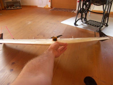 El ala de espuma es bastante fácil de trabajar y la herramienta de la opción que aquí hay un cuchillo caliente para cortar las cavidades de la electrónica.