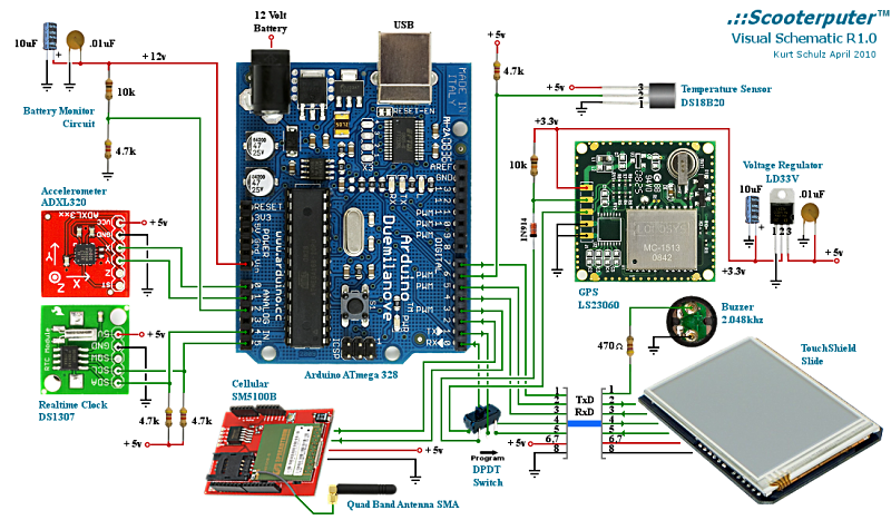 Scooterputer, el all-in-one patinete computadora hemos visto uno justo share de versiones de carputer involucrar a una Pi de frambuesa en los últimos meses, pero even de las que el poder de un Raspi no puede competir con el imponente este scooterputer suministrar energía por Arduino. de la misma manera que todos proyectos impresionantes, esta complexión es el producto de una caja grande de canalla de característica. Inicialmente, [Kurt] solamente quería un monitor de voltaje para su batería. Con un Arduino Duemilanove, un divisor de voltaje, y una noche de la codificación, [Kurt] fustigó un dispositivo simple con tres LED de demostrar el estado del bateador: tampoco bajo, bueno, o cobrando. el proyecto estaba completo hasta que corrió a través una pantalla de OLED impresionante. usar una visualización de pantalla táctil para la sólo la observación de batería fue una exageración de bit, cierto [Kurt] hecho un viaje over to Sparkfun y conseguir sus manos sobre un sensor de temperatura, reloj de tiempo real, acelerómetro, médicos generales sensor, e incluso un escudo celular. el scooterputer dar como resultado es una obra maestra de en - vehículo se visualiza: hay un velocímetro digital y médicos generales a quienes unidad, y el escudo celular work como un dispositivo de agrupación según rendimiento y una manera con la que descargar mapas de tiempo real de la ubicación actual del patinete itouchmap. mientras the majority of los equipo electrónico son escondidos bajo la capucha del patinete, la visualización tenía que estar en el clima afuera por supuesto. Para hacer esto, [Kurt] encontró un cercado bonito con una bota de goma que quedaba bien la visualización de OLED perfectamente. La visualización está relacionada con el Arduino con un cable de cat5, y todo debe durar más o menos mientras [Kurt] no conduce a través de un huracán. usted puede verificar un video del scooterputuer abajo. Vea estos interesantes articulosINICIO --------------------------------------------------------------------------------------------------------------------------- |