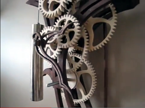 [ Frank ] envió un enlace a este fantástico reloj de madera . El diseño fue ideado por [ Clayton Boyer ] y que tiene de tamaño completo de plantillas para la venta en su sitio . Hemos maravillado por sus creaciones en el pasado , después de haber presentado su máquina inútil que se hizo a partir de engranajes de madera . Este Nos preguntamos qué va a construir uno de estos a ti mismo . Desde la página de Preguntas Frecuentes parece que podría llegar a funcionar con una sierra de calar , taladro , Dremel , y la lijadora