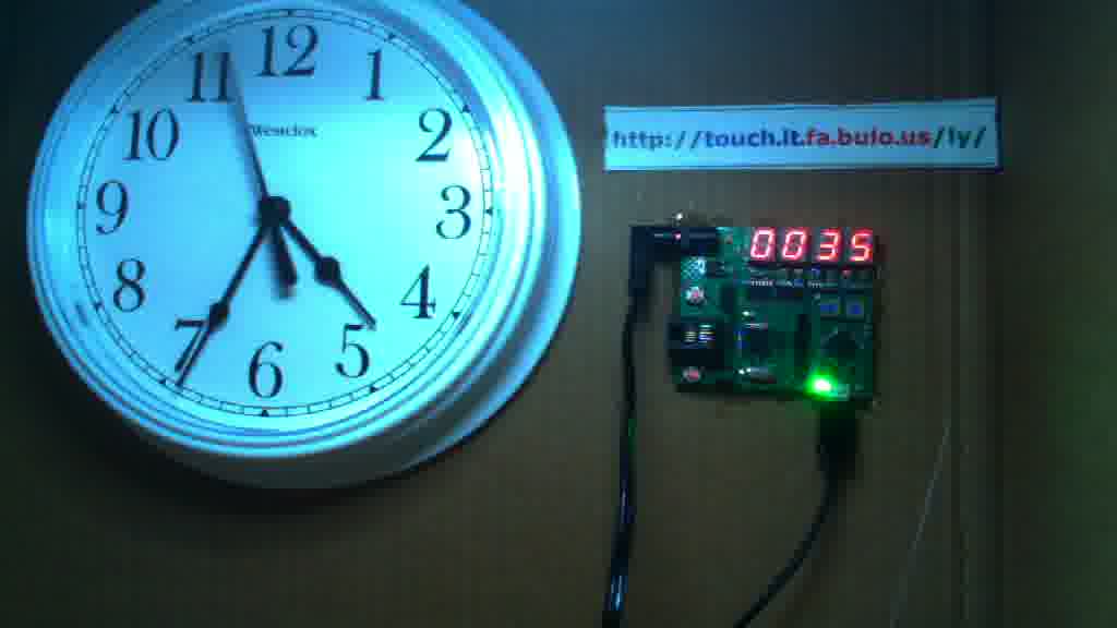 Touchit fabulosamente con otras personas en Internet [ John] del MIT está trabajando en un proyecto para traer un poco de interactividad a los hacks que hace. La idea básica de [John ] ' s construcción es muy simple: un microcontrolador conectado a Internet y un display de 7 segmentos recibe pulsaciones de botones de personas al azar en la web. Vea estos interesantes articulosINICIO --------------------------------------------------------------------------------------------------------------------------- |