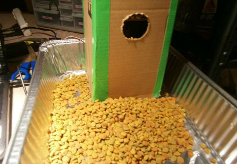 Un fácil de construir alimentador gato accionado por un actuador lineal bricolaje [ Will Finucane ] de la Revuelta Labs / blog de Mad Science estaba buscando una manera de mantener a sus gatos alimentados con alegría , mientras que fuera de unas cortas vacaciones , por lo que juntos una alimentador automático de barato y fácil de asegurarse de que sus mascotas no Hemos visto diferentes iteraciones de alimentadores automáticos de mascotas aquí antes, algunos que confían en la rotación de fondos falsos , mientras que otros utilizan manivela al estilo de los alimentadores para conseguir el trabajo hecho. Solución [ Will ] es un poco diferente, el empleo de un actuador lineal barata Vea estos interesantes articulosINICIO --------------------------------------------------------------------------------------------------------------------------- |