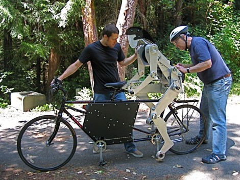 He aquí una interesante manera de llenar el segundo asiento de su bicicleta tándem. Parece que nadie quiere ser el fogonero, por lo que este señor decidió construir su pilotaje pareja. Julios poderes de la bicicleta desde la parte posterior con los mismos movimientos que un humano. No es la forma más fácil de hacer una bicicleta eléctrica, pero los mecánicos que ingresaron a ella son muy bonitas. Véase el viejo pedaleando después del pico.