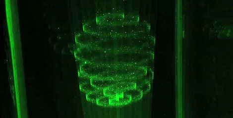 La de la cobertura de esta muestra que hemos encontrado, la demostración de láser verde es una versión reducida que utiliza agua como medio de visualización.